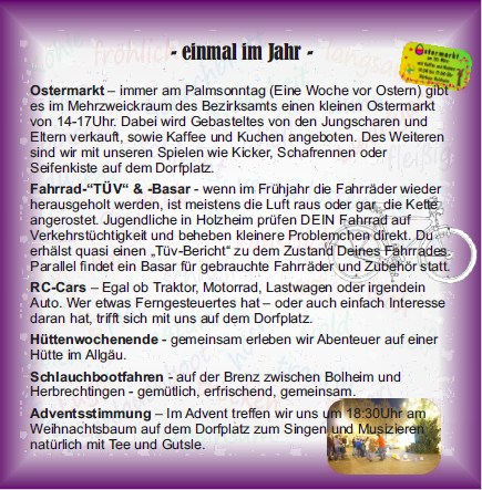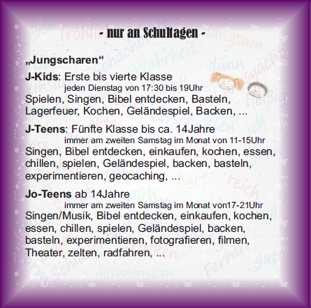 | -> mit Kindern zur Jungschar und sporadischen Veranstaltungen | |