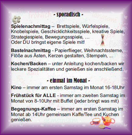| -> sporadisch zum Kaffee, Kino, Basteln oder Spielen | |